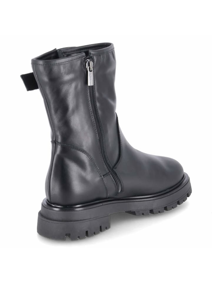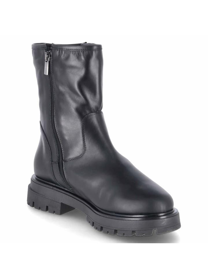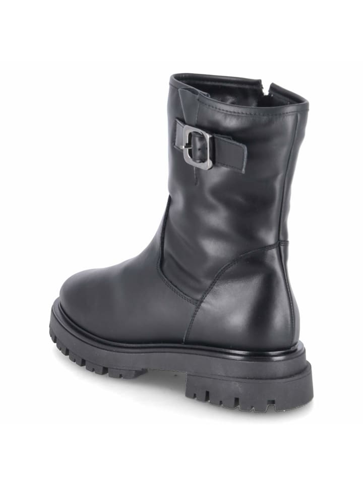 Kaerlek представляет эти зимние ботильоны - надежного спутника в холодное время года. Прочная, гладкая, черная натуральная кожа образует прочный внешний слой, а закругленный носок обеспечивает комфортную ходьбу. Теплая подкладка из овчины обеспечивает отличную теплоизоляцию, а кожаная стелька - ощущение равновесия даже при длительных прогулках. Боковая молния позволяет легко надевать и снимать ботинки, а регулируемый ремешок с пряжкой добавляет стильный штрих. Усиленная пятка и нескользящая подошва Prosil обеспечивают поддержку и уверенность на мокрых зимних поверхностях. Благодаря стандартной посадке подобрать правильный размер не составит труда. Модный совет: эти ботинки особенно гармонично смотрятся с трикотажным комплектом в рубчик и длинным шерстяным пальто. Повседневный вариант с джинсами mom и свитером крупной вязки.