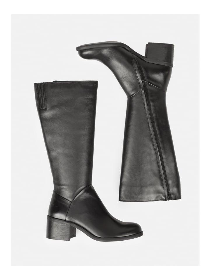 MIRA D946 Стильные высокие сапоги на низком каблуке из натуральной мягкой черной кожи. Оснащены внутренней молнией для удобства и станут идеальным дополнением к любому случаю.