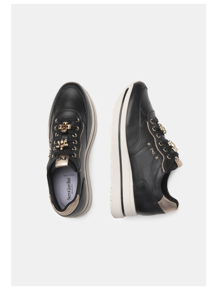 Эти удобные и модные кроссовки от Nero Giardini со съемной стелькой и превосходным качеством станут идеальным дополнением к любому случаю. В сочетании с платьем, брючным костюмом или джинсами эти туфли всегда будут выглядеть стильно. Независимо от повода, эти очаровательные и эффектные туфли из высококачественной кожи будут радовать вас снова и снова в повседневной жизни.