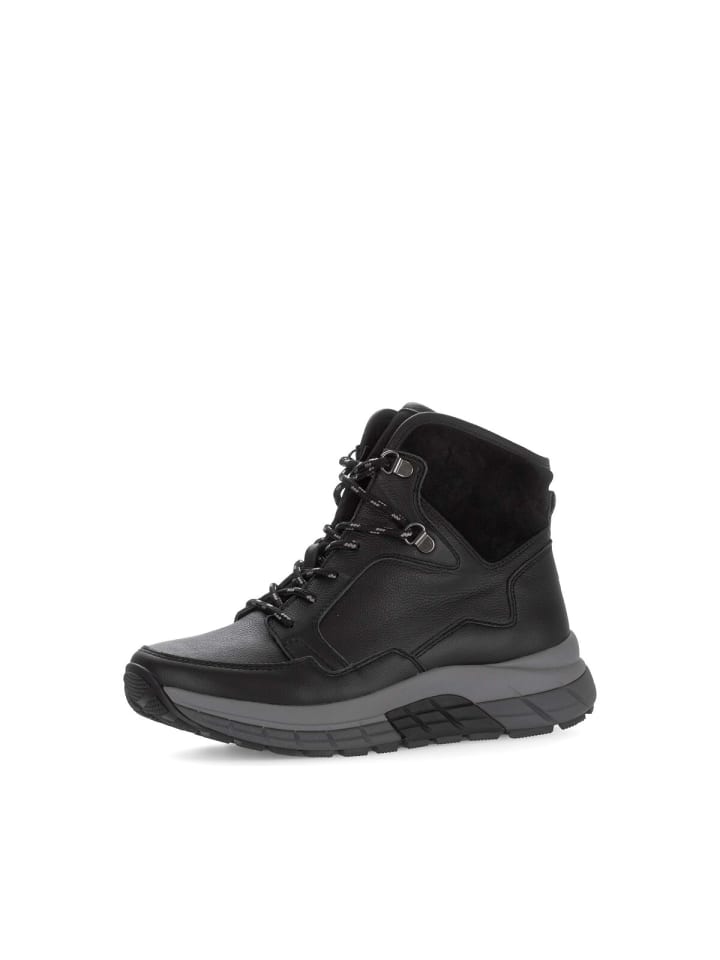 Спортивные ботильоны Rollingsoft - абсолютный must-have для модниц. Причина: их можно комбинировать по-разному, и они особенно популярны в межсезонье. Высококачественный верх черного цвета из прочной гладкой кожи придает модели непринужденный вид. Эта модель оснащена съемной стелькой из переработанного материала, которая не только обеспечивает комфорт, но и отражает экологичность. Спортивные