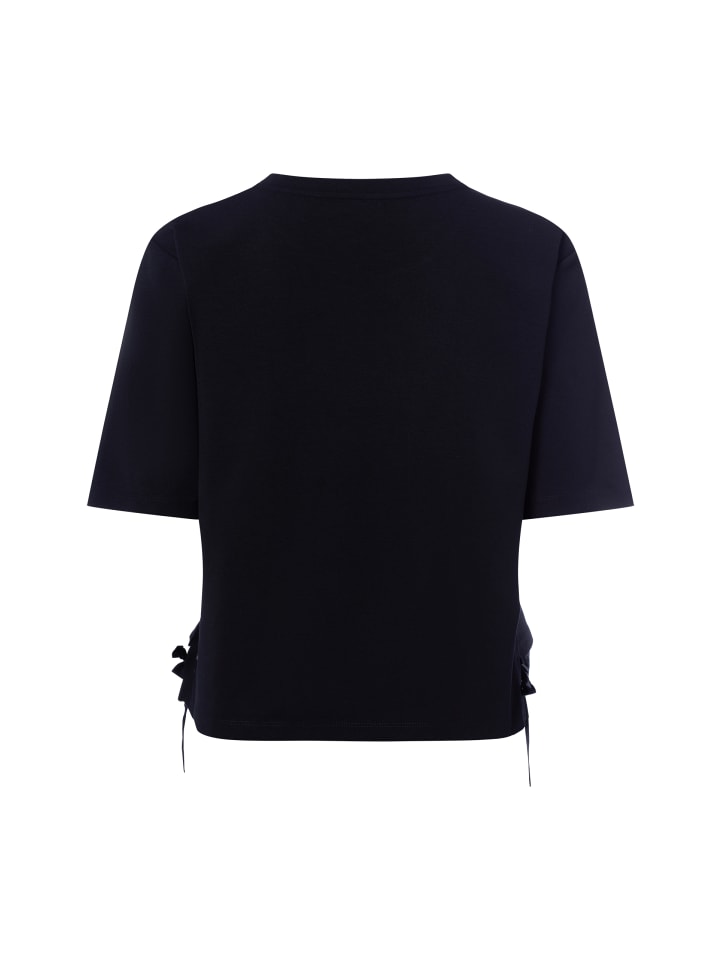 Спортивная футболка Marc Cain из эластичной смеси хлопка и модала имеет эффектный передний край со шнурком, что придает ей стильный вид.