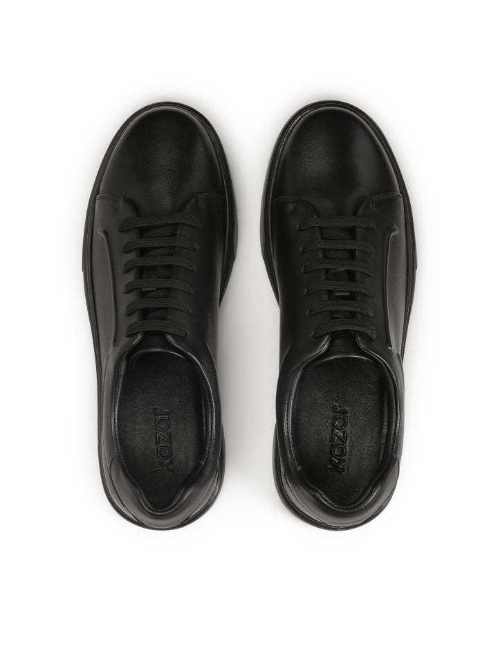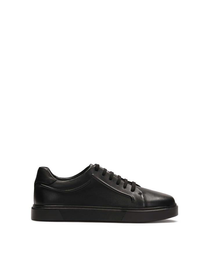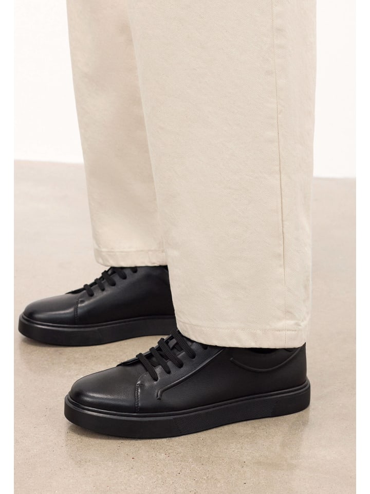 Мужские кроссовки глубокого черного цвета для ценителей простоты и вневременного стиля. Изготовленные полностью из высококачественной натуральной кожи, они сочетают в себе элегантность и повседневный комфорт. Верх с чистыми, обтекаемыми линиями лишен лишних деталей, подчеркивая его минималистичный характер. Изящное рельефное тиснение на внешней стороне добавляет тонкий стилистический акцент и придает обуви индивидуальность, не нарушая ее единообразия. Классическая шнуровка завершает образ и обеспечивает идеальную посадку. Простая, однородная подошва гармонирует с остальным дизайном, обеспечивая превосходный комфорт и современный вид. Идеальный выбор для мужчин, которые ценят качество, простоту и изысканную эстетику.