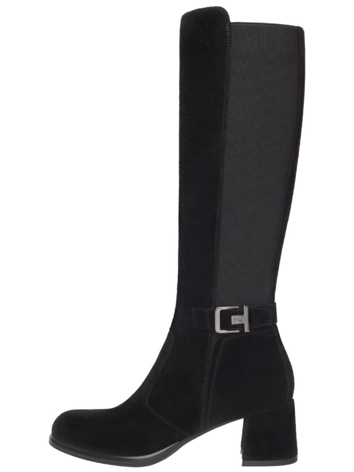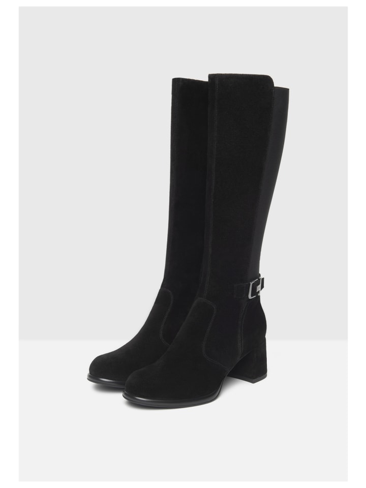 Вневременные ботинки из мягкой кожи с декоративной пряжкой и удобным блочным каблуком. Эластичное голенище обеспечивает оптимальную посадку.