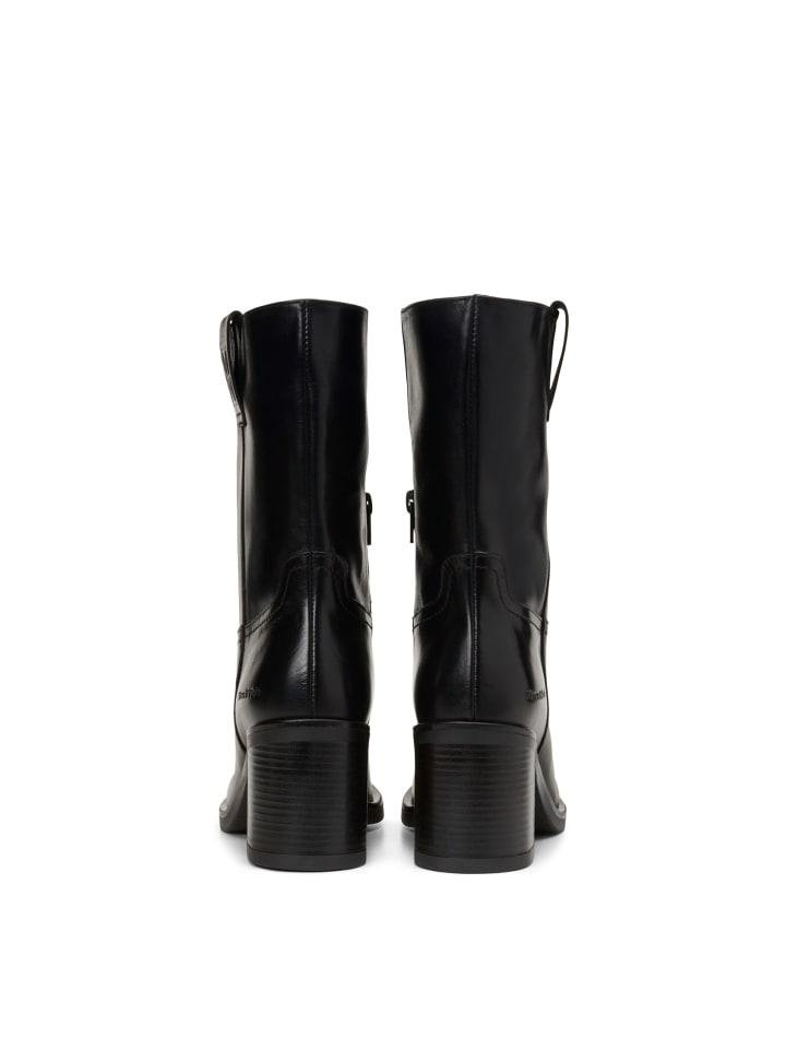 Стильные короткие сапоги из высококачественной воловьей кожи с четким силуэтом и высоким качеством изготовления. Встроенная внутренняя молния обеспечивает легкое надевание и снятие, а боковая кожаная петля с зеркальным тиснением в виде буквы «М» добавляет изящные акценты. Внутренняя часть выполнена из мягкой синтетической подкладки и удобной стельки из козьей кожи. Высокий каблук и легкая подошва из термопластичного каучука подчеркивают женственный образ, обеспечивая комфорт при ходьбе.