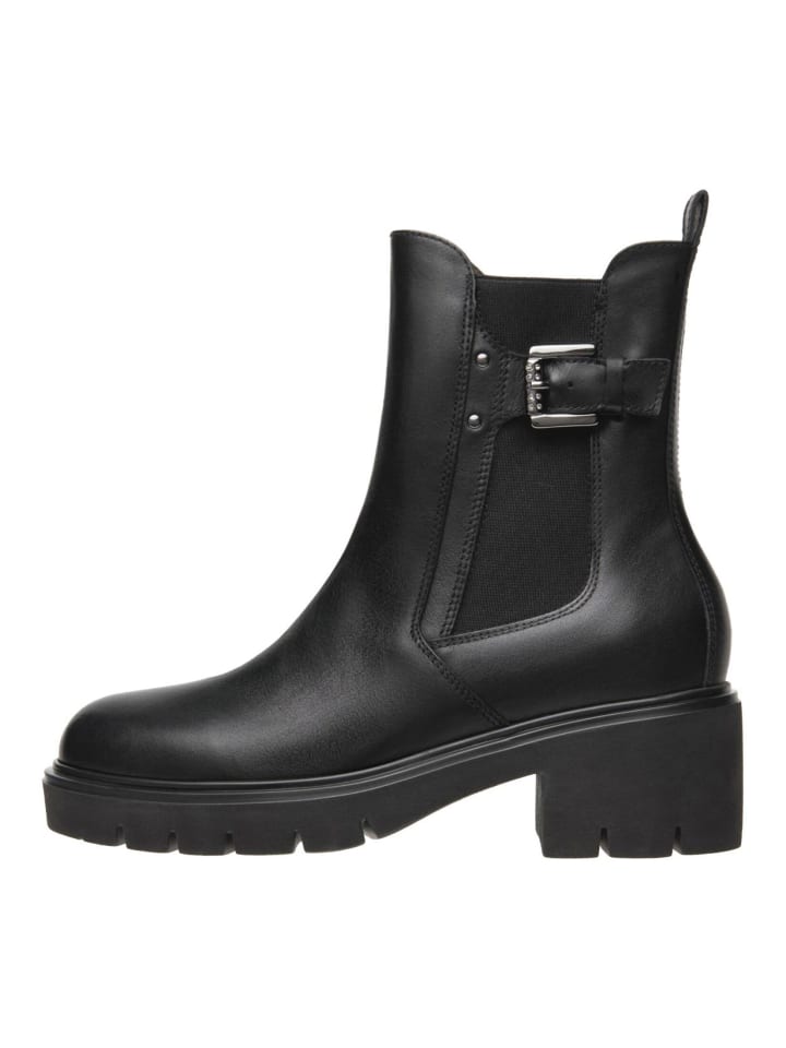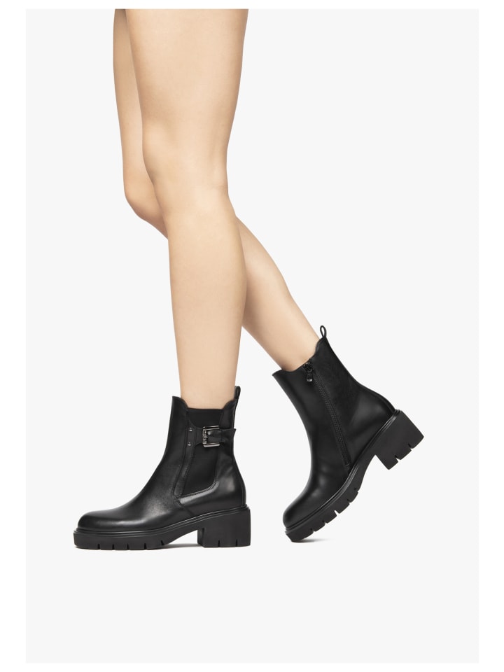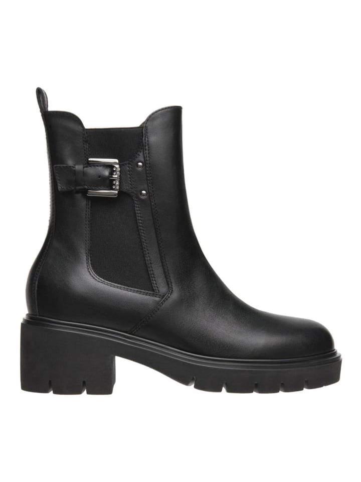 Фантастические классические ботильоны от Nero Giadini. Высококачественная гладкая кожа придает обуви элегантный вид, а эластичные вставки обеспечивают типичный комфорт «Челси». Уникальная рифленая подошва и устойчивый блочный каблук обеспечивают не только стильный вид, но и надежную поддержку и комфорт при ходьбе. Декоративный ремешок сбоку стильно дополняет дизайн - модная универсальная модель для стильных женщин. Сделано в Италии.
