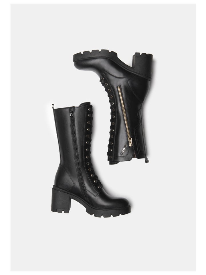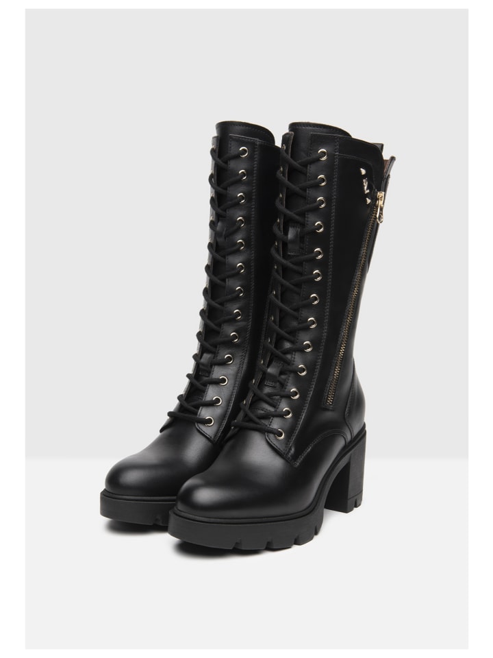 Эти эффектные ботинки на высоком каблуке со шнуровкой от Nero Giardini сочетают в себе женственный шик и рок-н-ролльный настрой. Изготовленные из тонкой гладкой кожи, ботинки поражают внимание такими привлекательными деталями, как декоративная шнуровка, золотистая молния и небольшие заклепки. Блочный каблук обеспечивает устойчивость и уверенный вид. Благодаря боковой молнии ботинки легко надевать и снимать - настоящая находка для модниц, которые ценят стиль и комфорт. Сделано в Италии.