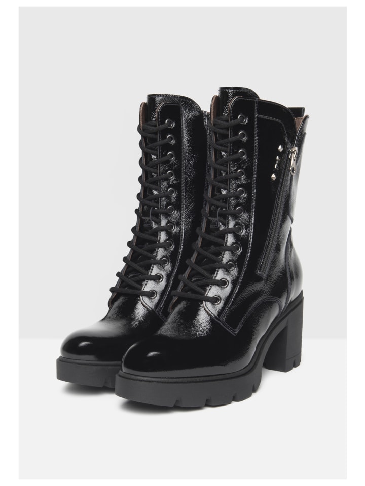 Эти ботильоны на шнуровке и высоком блочном каблуке от Nero Giardini с ярким дизайном станут стильным акцентом современного гардероба. Высококачественная лакированная кожа придает обуви элегантный вид, а массивная подошва и прочный блочный каблук добавляют городской штрих. Боковые молнии и декоративная шнуровка обеспечивают комфорт и индивидуальный образ. Идеально подходят для стильных образов с характером - сделано в Италии.