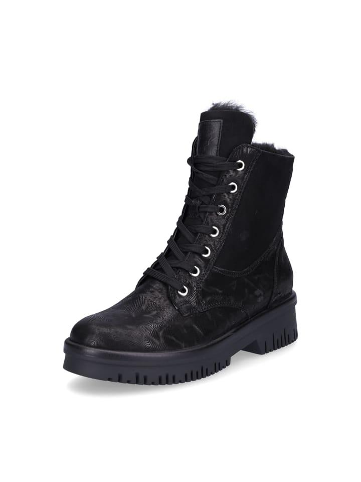Женские ботильоны Waldläufer из черной наппы и нубука со шнуровкой, молнией, теплой текстильной подкладкой и умеренно блочным каблуком