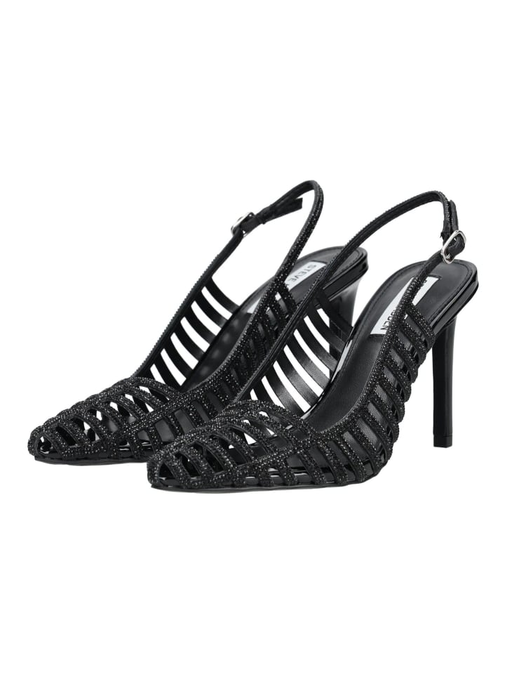 Эти элегантные туфли-лодочки Steve Madden с открытой пяткой впечатляют изысканным сетчатым дизайном и изящными ремешками, украшенными сверкающими стразами, - настоящая приманка для глаз с ноткой гламура. Открытый носок придает туфлям воздушность и элегантность.
