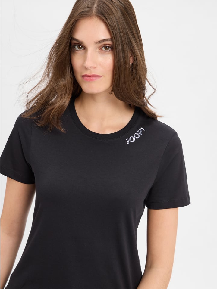 Этикетка с блестящими стразами искусно дополняет классический базовый образ футболки JOOP! Tori.