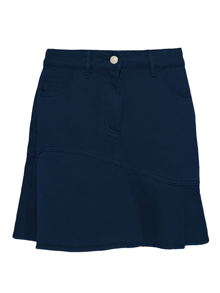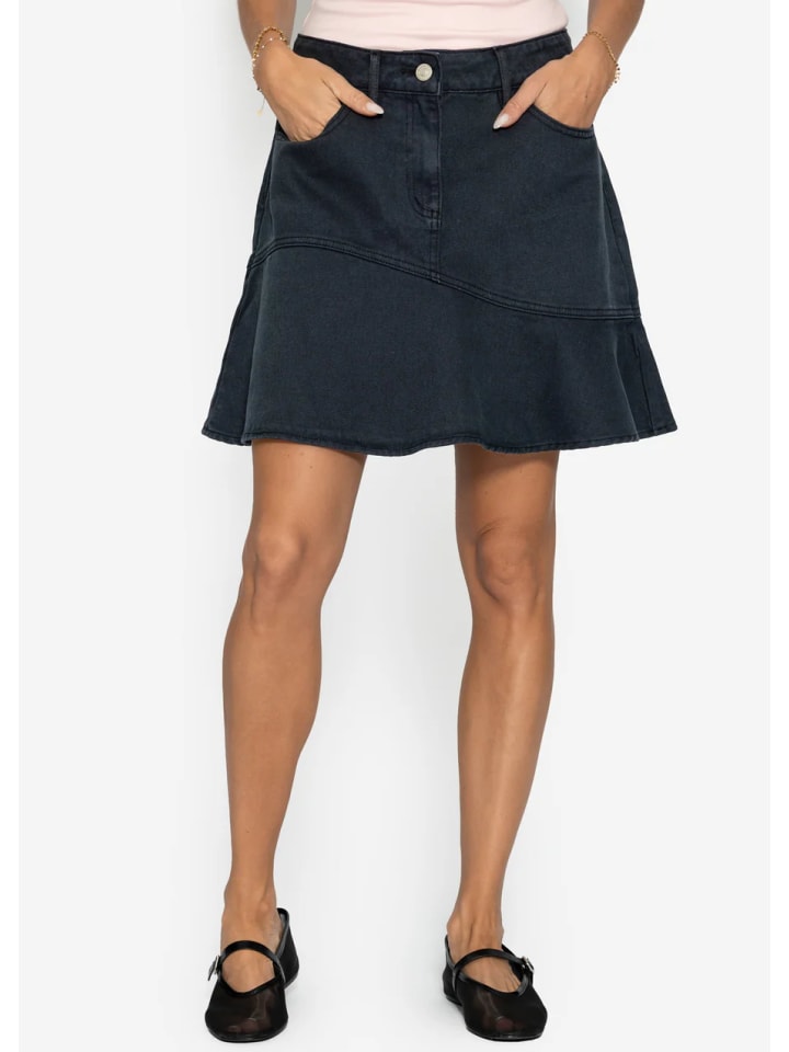 Эта джинсовая юбка сочетает в себе классические элементы денима с современным женственным дизайном. Слегка расклешенный крой и изогнутый шов создают особенно выигрышную посадку, гарантируя свободу движений и добавляя модный штрих в образ. Юбка удобно сидит на бедрах, позволяя подобрать индивидуальный стиль благодаря шлевкам для ремня и надежно застегивается на пуговицу и молнию. Практичные боковые карманы в классическом пятикарманном стиле дополняют функциональный дизайн и придают юбке стильный вид. Независимо от того, сочетается ли эта юбка с кроссовками для спортивного образа или с блузкой и сандалиями для элегантного ансамбля, она является универсальной вещью, которая легко впишется в самые разные наряды и будет уместна в любое время года.