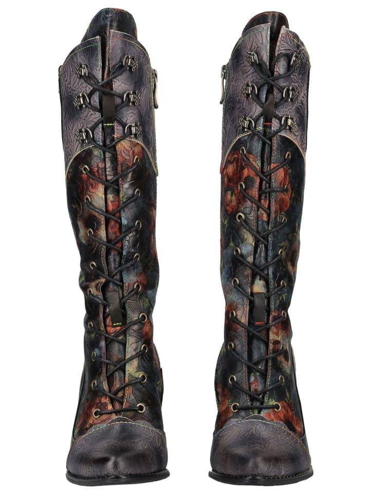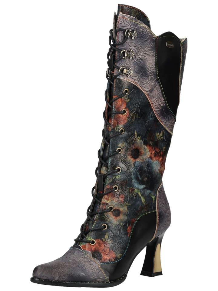 Эти экстравагантные высокие сапоги от Laura Vita обязательно привлекут внимание. Изысканный цветочный узор в сочетании с тиснеными кожаными вставками добавит изюминку любому образу. Шнуровка не только создает уникальный образ, но и обеспечивает идеальную посадку по ноге. Молния сбоку позволяет легко надевать и снимать сапоги. Женственный каблук идеально дополняет эффектный стиль.