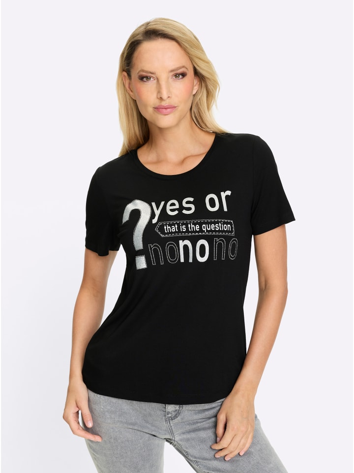 Рубашка с привлекательным принтом спереди, декоративными стразами и привлекающими внимание блестками. Круглый вырез, короткие рукава. Изготовлена из вискозы Lenzing ECOVERO.