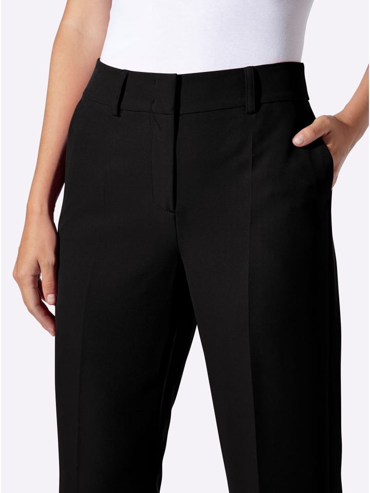 Элегантные брюки Marlene широкого кроя с аккуратными стрелками. Широкий, удобный пояс с застежкой на крючок, передние карманы и декоративные карманы сзади. Стандартная посадка. Комфортная посадка. Длина брючины примерно 58 см. Немнущаяся, эластичная ткань, подходящая для путешествий. Изготовлено из переработанного полиэстера.
