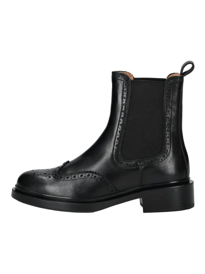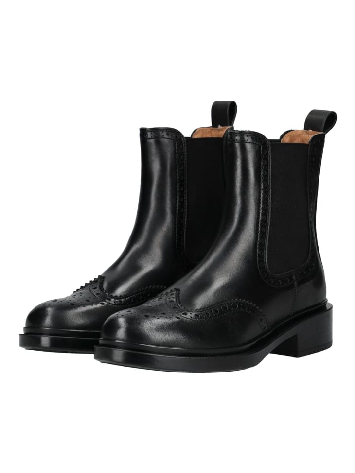 Эти элегантные ботинки челси сочетают в себе вневременную элегантность и современный комфорт. Высококачественная гладкая кожа дополнена стильными деталями в стиле броги, придающими обуви классический характер. Благодаря эластичным боковым вставкам и петле на пятке их легко надевать и снимать. Прочная подошва с небольшим каблуком обеспечивает надежную опору и подчеркивает изысканный образ. Универсальные ботинки, идеально подходящие как для повседневной носки, так и для элегантных образов.