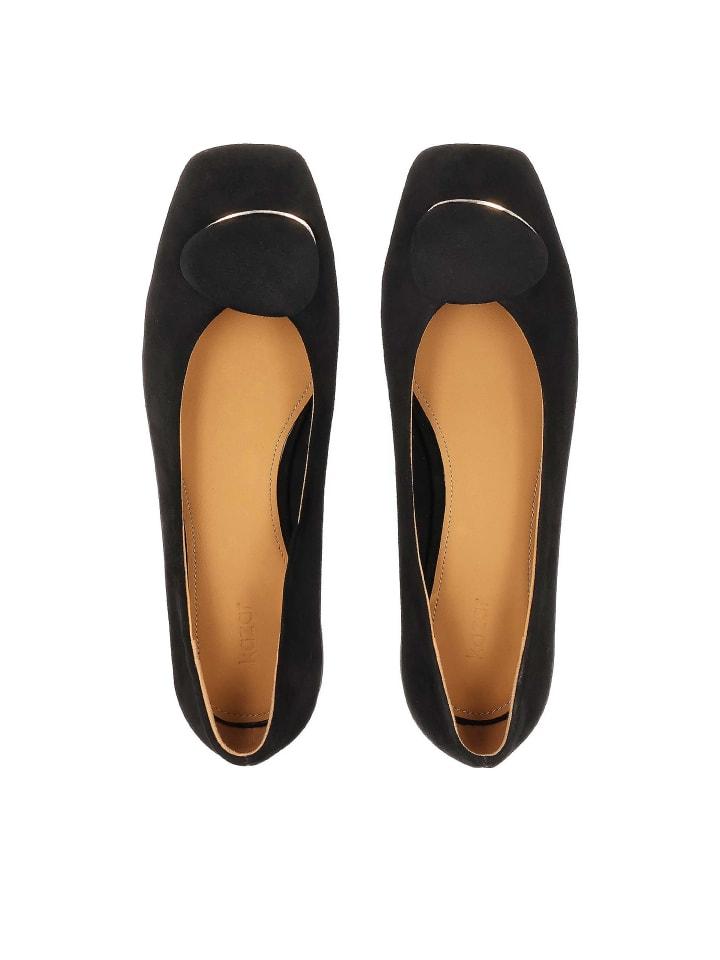 Черные туфли-лодочки на плоском широком каблуке являются воплощением сдержанной элегантности и комфорта. Изготовленные из высококачественной мягкой замши, они впечатляют своей бархатистой текстурой, придавая им изысканный характер. Классический, гладкий силуэт обуви в сочетании с удобным, устойчивым каблуком идеально сочетает элегантность и повседневный комфорт. Стильное украшение на носке привлекает внимание, придавая обуви уникальный характер и добавляя нотку роскоши и утонченного гламура. Благодаря этим деталям они дополняют как официальные, так и повседневные наряды, добавляя изысканности. Они станут отличным выбором для женщин, которые ценят классический стиль в современной интерпретации - идеально подходят для офиса, светских встреч или элегантных вечерних выходов, предлагая стильный вид и комфорт в течение всего дня. Подкладка выполнена из мягкой полуанилиновой овчины, которая отличается превосходным впитыванием влаги и гарантирует высокий уровень комфорта. Подошва изготовлена из кожи тунца, что обеспечивает эстетичный внешний вид. Верх: кожа; Подкладка: Другой материал; Стелька: Другой материал; Подошва: Другой материал