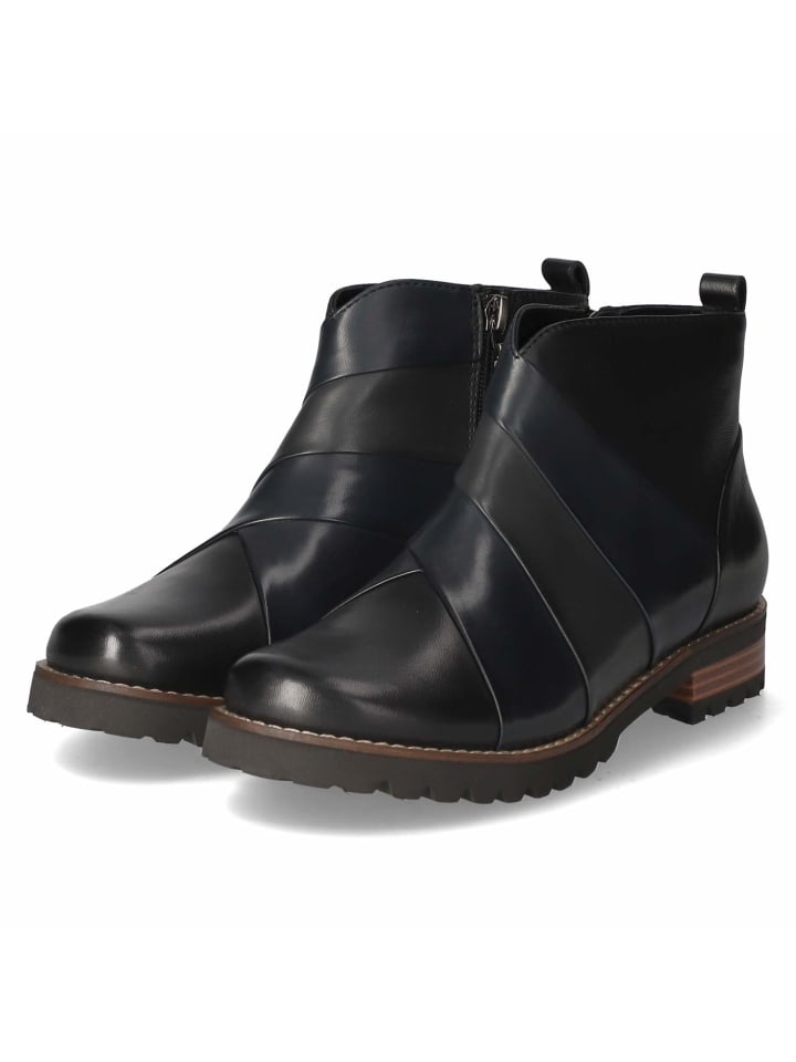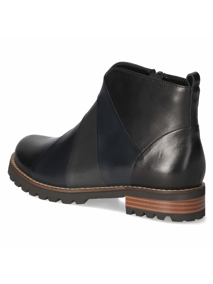 Форма следует за функцией: эти ботильоны Kaerlek сочетают в себе чистые линии с продуманными функциями. Черная гладкая кожа дышащая и образует элегантную основу, которой придают современный вид три широкие декоративные полосы на подъеме. Легкая подкладка делает ботинки удобными в прохладные дни. Боковая молния и язычок позволяют быстро и легко надевать их, а усиленная пятка улучшает поддержку и устойчивость. 3-сантиметровый каблук облегчает длительные прогулки, а гибкая, нескользящая подошва обеспечивает надежную опору на различных поверхностях - идеально для прогулок. Закругленный носок и текстильно-синтетическая стелька способствуют ощущению комфорта; посадка соответствует размеру. Модный совет: Тренчкот и облегающие брюки от костюма создают современный городской шик.
