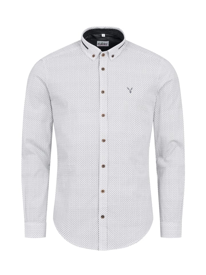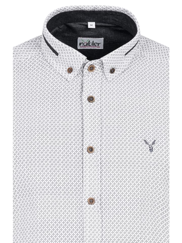 Ищете особенную рубашку для следующего Октоберфеста? Наша традиционная рубашка Perez с длинными рукавами черного цвета от Nübler отличается уникальным узором. Маленькие ромбы и точки создают экстравагантный дизайн. Маленький вышитый олень на левой груди добавляет традиционный штрих. Пуговицы под дерево еще больше подчеркивают традиционный вид. Небольшие дополнительные пуговицы позволяют застегнуть воротник. Инструкции по уходу: машинная стирка при 30°C в режиме деликатной стирки, глажка при низкой температуре. Состав: 100% хлопок.