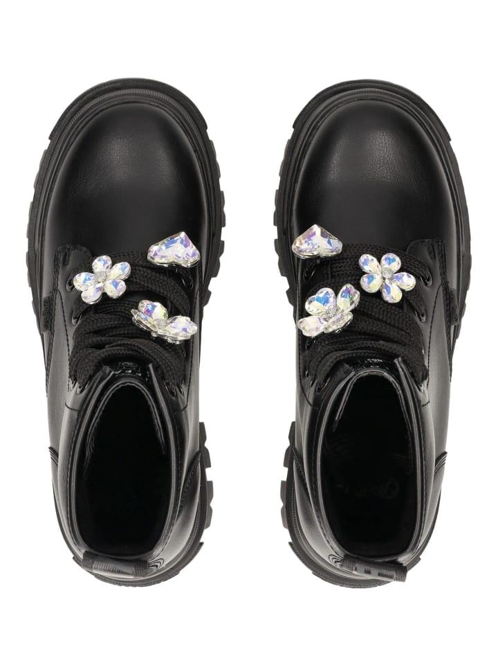 Эти модные ботинки сочетают в себе строгий стиль с ноткой гламура и по-настоящему притягивают взгляды благодаря эффектным декоративным деталям на шнурках. Уютная теплая подкладка сохраняет ноги в тепле даже в холодные дни, а прочная подошва обеспечивает надежное сцепление. Практичная съемная стелька позволяет индивидуально подогнать обувь и идеально подходит для ортопедических стелек. Идеально подходят для тех, кто ищет комфорт, стиль и функциональность в одном ботинке.