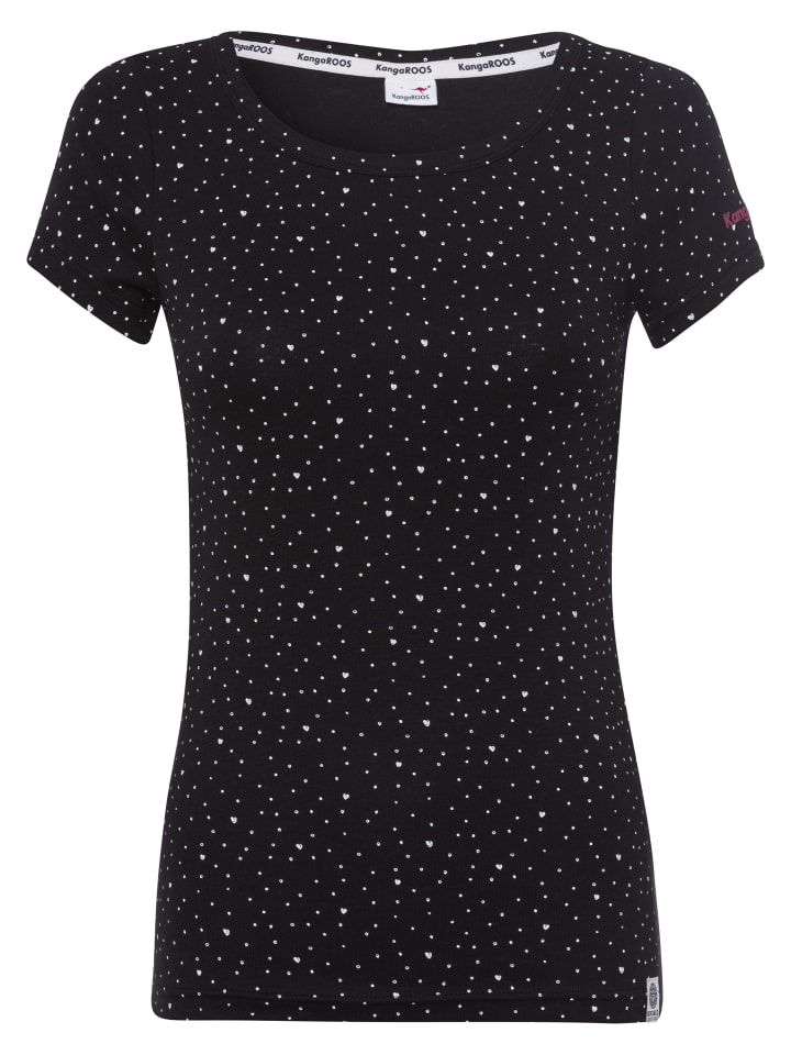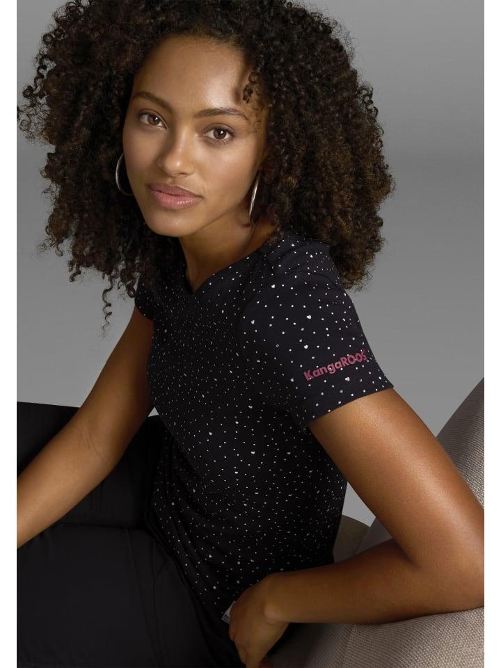 Классическая женская футболка от KangaROOS. Облегающий крой до бедер. С принтом в стиле casual. Благодаря высокой эластичности ребристого материала верх адаптируется к форме тела.