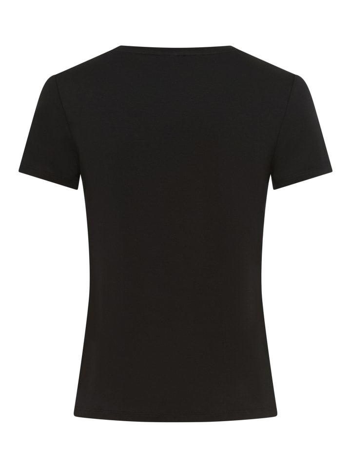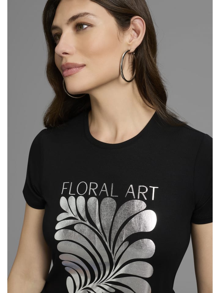 - Футболка из эластичного трикотажа с блестящим принтом и металлической этикеткой.