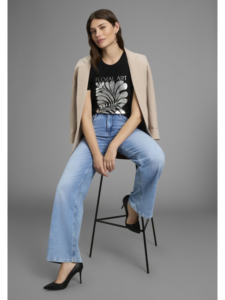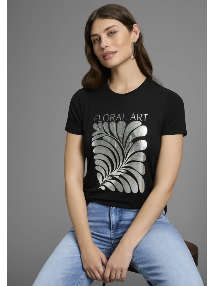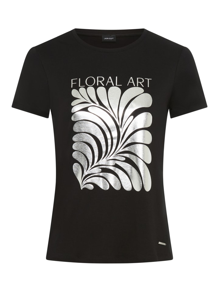 Классическая женская футболка от Laura Scott с принтом. Длина до бедер, стандартный крой и блестящий принт. Изготовлена из эластичного трикотажа, обеспечивающего исключительный комфорт.
