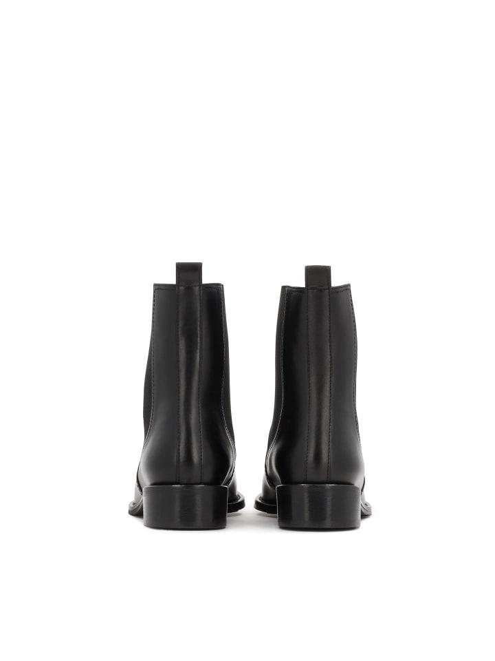 Черные ботинки челси из высококачественной натуральной кожи - классический выбор обуви с минималистичным и элегантным внешним видом. Дизайн впечатляет чистыми линиями и изысканными деталями. Гладкий верх без лишних украшений образует гармоничное целое с широкими эластичными вставками, которые обеспечивают идеальную посадку и исключительный комфорт. Тщательно проработанная форма со слегка закругленным носком подчеркивает классический характер обуви и придает силуэту легкость и изящность. Небольшой устойчивый каблук и точно обработанная подошва с тонким краем добавляют нотку изысканности. Незаметная петля сзади позволяет легко надевать ботинки и добавляет изящную функциональную деталь. Эти ботинки - идеальный выбор для тех, кто ценит изысканную простоту и безупречный стиль. Они подойдут как для элегантного делового стиля, так и для более официальных повседневных образов.