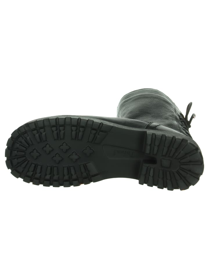 Ботинки TRENTO напоминают байкерские ботинки, но с женственным оттенком. Тонкая телячья кожа и декоративная шнуровка сзади делают эти ботинки Think! поистине уникальными. Шнуровка также обеспечивает отличную посадку, поскольку ее можно регулировать индивидуально. Благодаря своему характерному протектору массивная резиновая подошва TRENTO не только стильная, но и обеспечивает отличное сцепление. При этом они удивительно легкие.