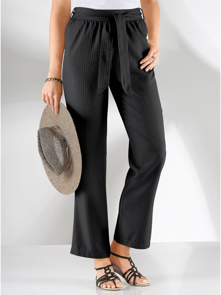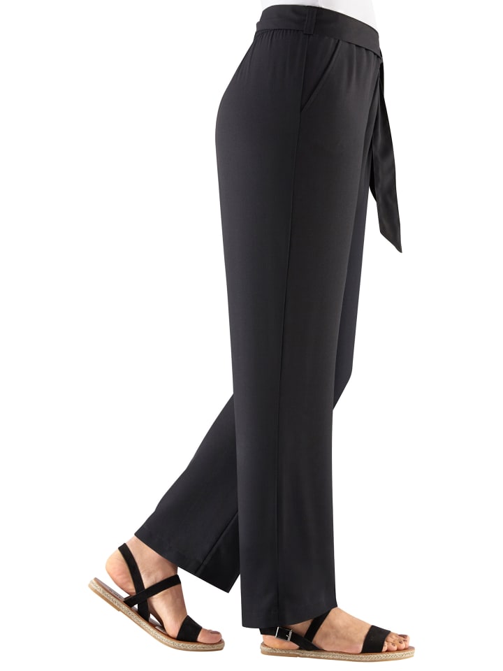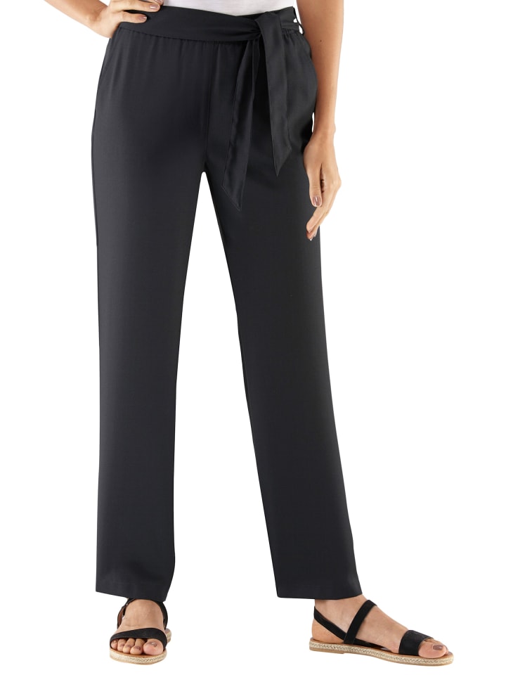 Не мнутся, просты в уходе и невероятно удобны! Длинные брюки с эластичным поясом, шлевками сзади и имитацией молнии. Два практичных кармана. И самое приятное: в комплект входит подходящий пояс!