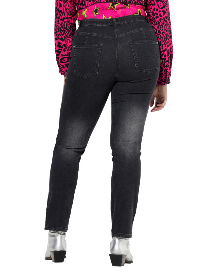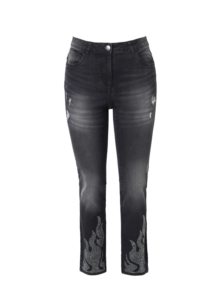 Джинсы Paula прямого кроя, с эластичной тканью и искрящимся пламенем по подолу. Прямой и удобный крой с пятью карманами. Пояс со шлевками, пуговицей и молнией.