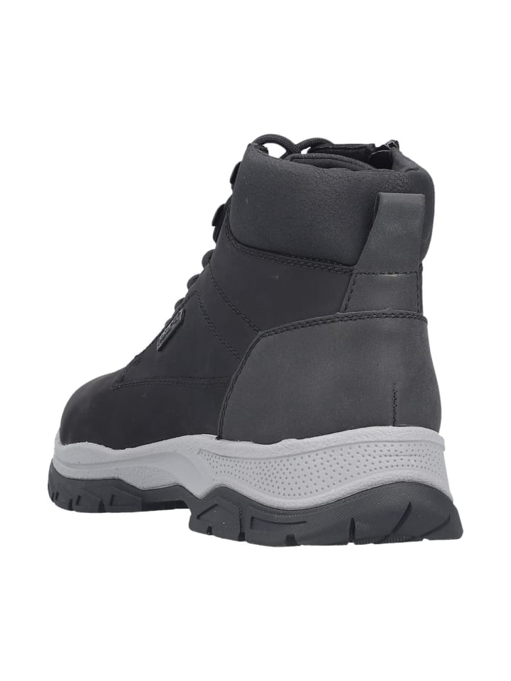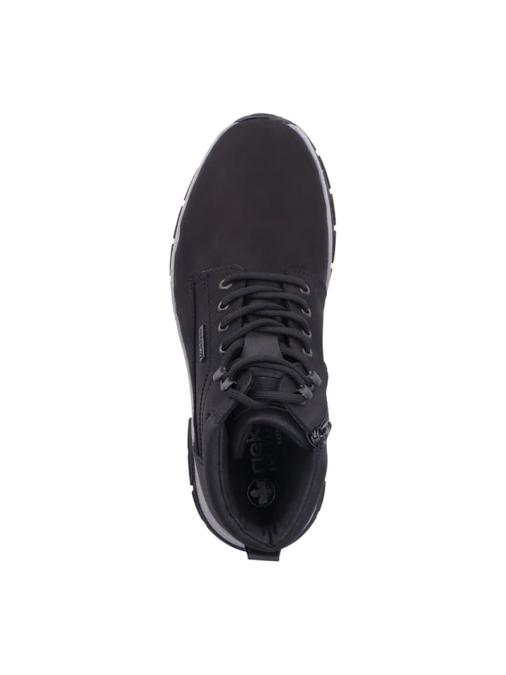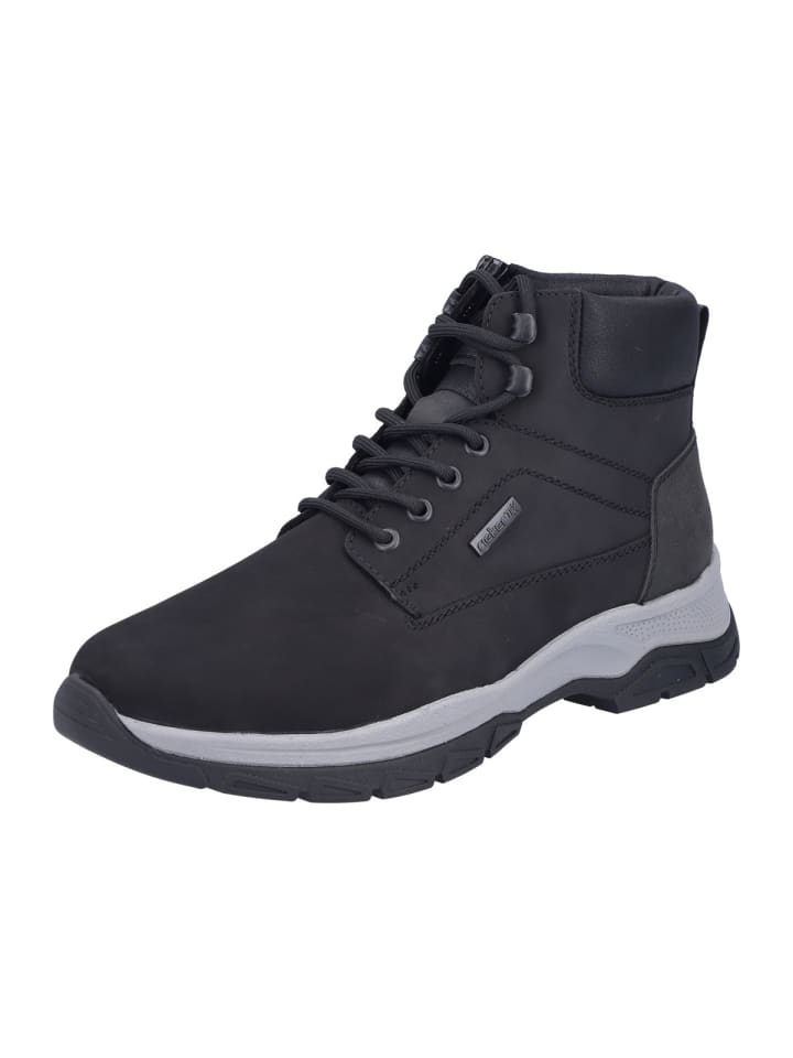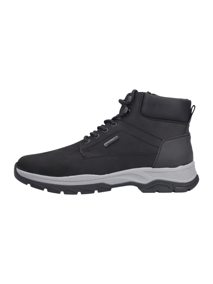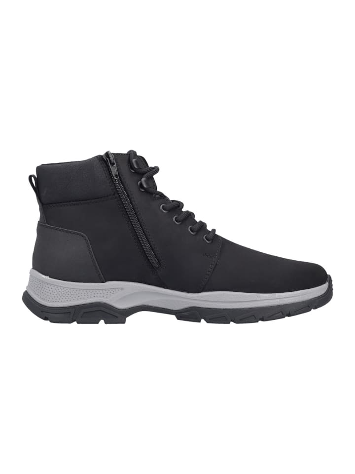 Верхний материал из нубука и синтетического материала отличается эластичностью, прочностью и высоким качеством. Амортизирующая стелька Rieker Antistress обеспечивает исключительный комфорт и при необходимости может быть заменена на ваши собственные ортопедические стельки. Шнуровка позволяет индивидуально отрегулировать обувь по форме вашей стопы, а боковая молния позволяет легко надевать и снимать обувь. Элегантная и цепкая подошва обеспечивает оптимальную поддержку при каждом шаге. Водонепроницаемые и ветрозащитные, 30241 станут вашим надежным спутником.