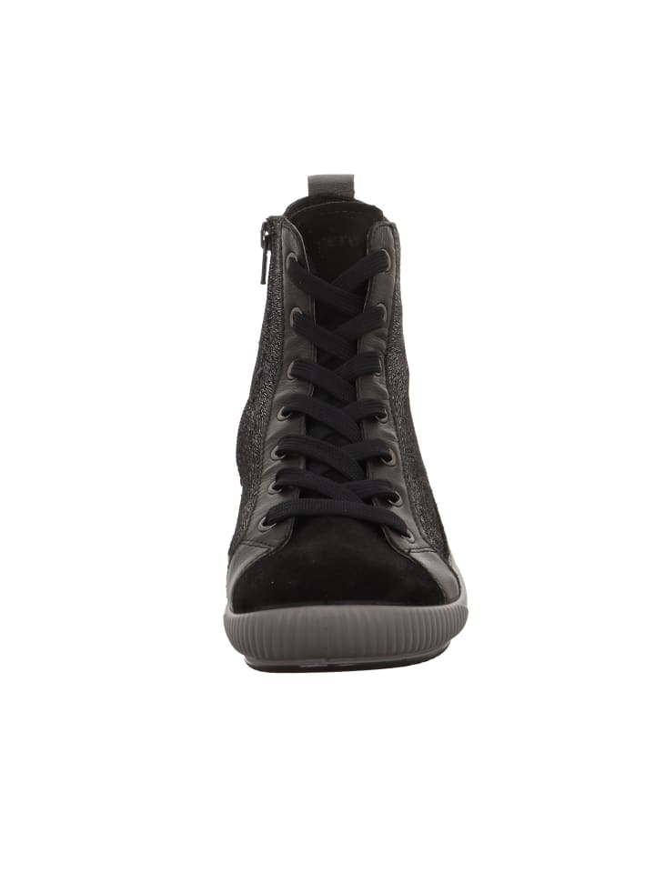 Кроссовки TANARO 5.0 с высокой шнуровкой и теплой подкладкой станут идеальным спутником на зиму. Высококачественные материалы придают этим ботильонам Legero современный вид. Металлические люверсы, широкая шнуровка и небольшая петля на пятке подчеркивают спортивный характер модели. Подошва TANARO 5.0 в тон дополняет стильный образ.