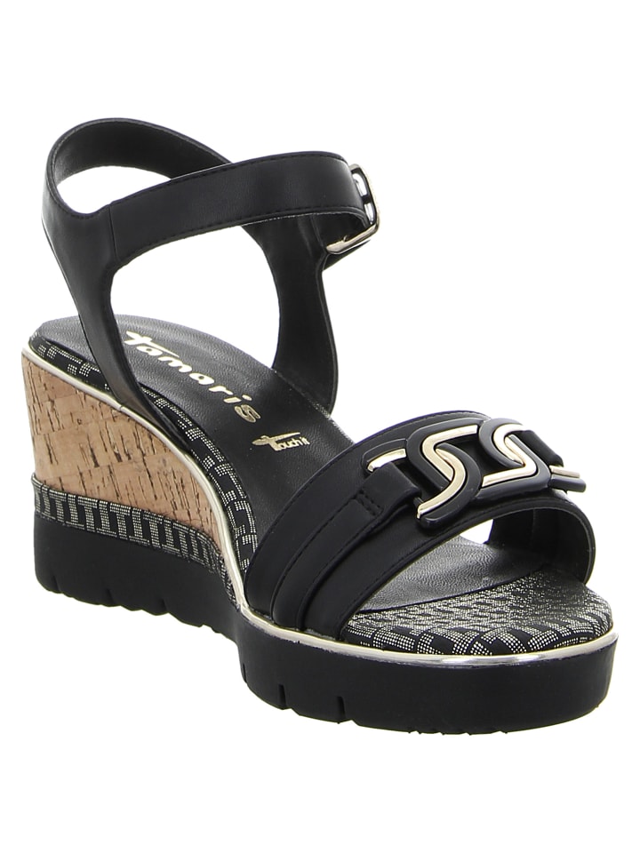 Босоножки на танкетке черного цвета Tamaris 10 341₽