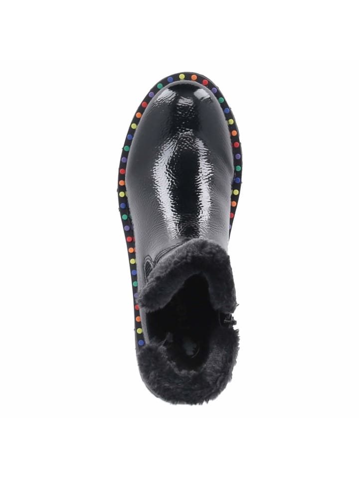 Заявление, которое сочетает классический стиль с современными тенденциями: женские ботинки Chelsea Rieker имеют глянцевую лакированную отделку, округлую колодку и эффектный блочный каблук высотой 5 см. Нескользящая подошва обеспечивает комфортную походку, а непринужденное легкое ощущение смягчает общий вид. Внутри теплая подкладка, мягкая текстильная стелька и практичная съемная стелька для индивидуальной регулировки обеспечивают исключительный комфорт. Боковая молния позволяет легко надевать и снимать ботинки. Узкий крой элегантно облегает ногу и дополнен женственной отделкой из искусственного меха на манжете; яркая подошва в горошек добавляет нотку сдержанной игривости. Синтетический верх и точное мастерство делают эти ботинки надежным спутником с утра до вечера. Модный совет: атласное платье-комбинация, трикотажный кардиган и плотные колготки создают захватывающий контраст с глянцевой отделкой.