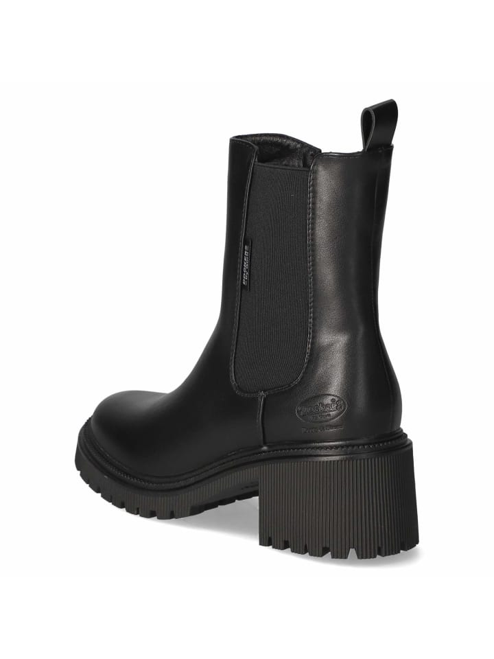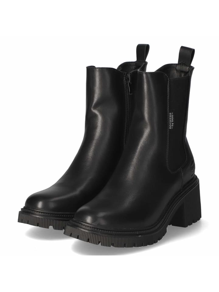 Элегантность и комфорт идеально сочетаются в этих ботинках челси Dockers. Черный верх из современного синтетического материала отличается гладким, элегантным внешним видом и хорошо сохраняет форму при повседневной носке. Блочный каблук высотой 6 см обеспечивает высоту и устойчивость, а закругленный носок и гибкая подошва обеспечивают плавность шага. Текстильная стелька и мягкая стелька обеспечивают комфортную поддержку. Молния, эластичная боковая вставка и язычок позволяют легко надевать ботинки, а изящный логотип бренда добавляет стильный штрих. Размер соответствует заявленному, обеспечивая комфорт даже взрослым. Модный совет: отлично сочетается с плиссированной юбкой и коротким пиджаком, а также с джинсами-баллонами и пальто.