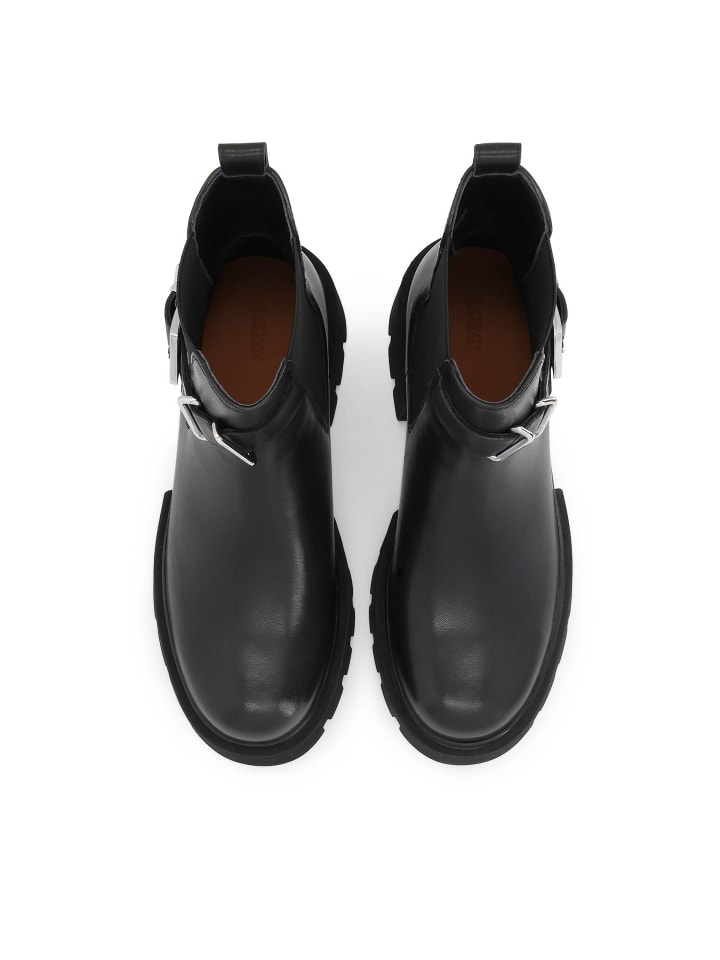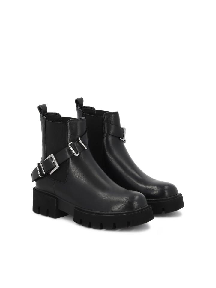 Современные ботинки из высококачественной натуральной кожи, обеспечивающие прочность и элегантный вид. Эластичные боковые вставки обеспечивают легкость надевания и идеальную посадку. Декоративный ремешок с металлическими пряжками добавляет характерный модный штрих. Толстая тракторная подошва гарантирует комфорт и хорошее сцепление, идеально дополняя современные тенденции городского стиля.