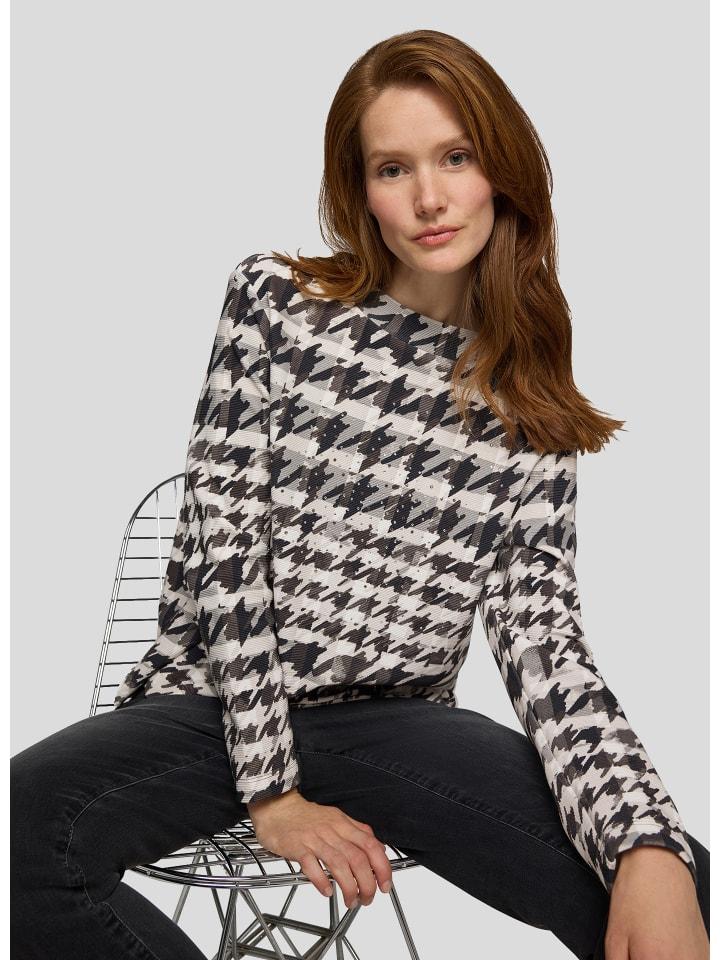 Эта модная рубашка сразу привлекает внимание крупным принтом «гусиная лапка» в актуальном стиле. Блестящие стразы спереди добавляют сверкающие акценты. Небольшой воротник-стойка и разрез по подолу обеспечивают современный вид и свободу движений. Мягкий, эластичный трикотаж приятен на ощупь и прост в уходе.