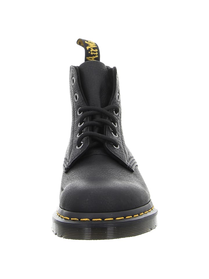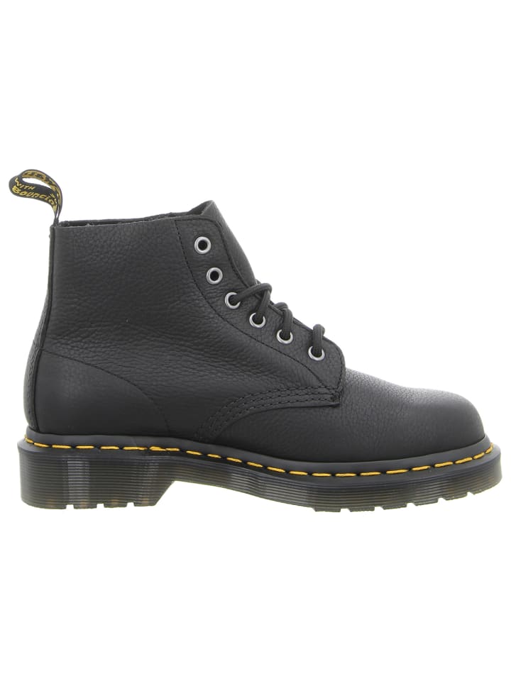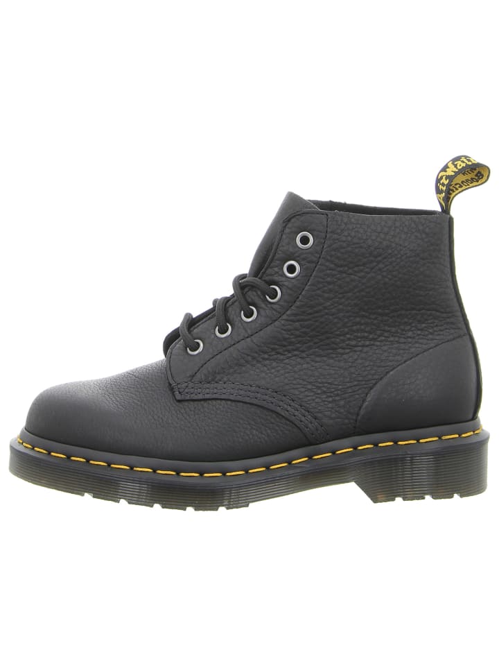 Эти стильные черные унисекс-ботинки 101 от Dr. Martens отличаются вневременной классикой. Изготовленные из высококачественной веганской кожи, эти культовые ботинки непременно привлекут внимание на фестивалях и концертах, а также дополнят повседневные и женственные образы. Стильный силуэт, шнуровка с шестью люверсами в типичном панковском стиле и фирменная желтая строчка гарантированно привлекут внимание. Фирменная подошва Air Cushion обеспечивает комфорт и защищает от воздействия внешних факторов, таких как масло, бензин и другие опасные вещества. С этими ботинками Dr. Martens мужчины и женщины будут сокрушать друг друга и днем, и ночью!