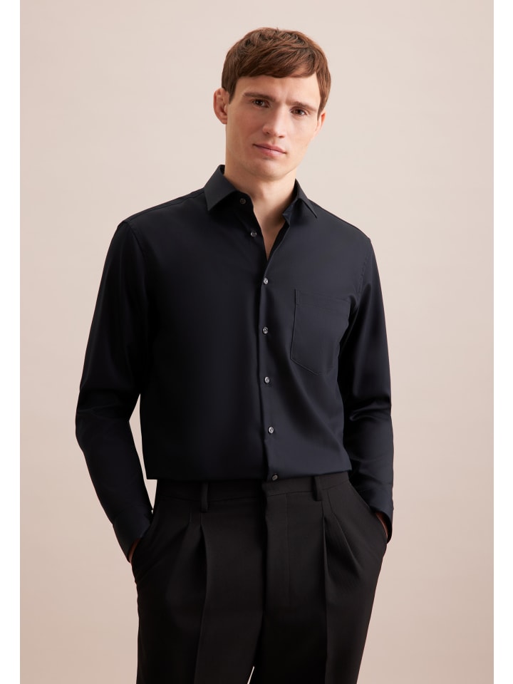 Деловая рубашка Comfort черного цвета Seidensticker