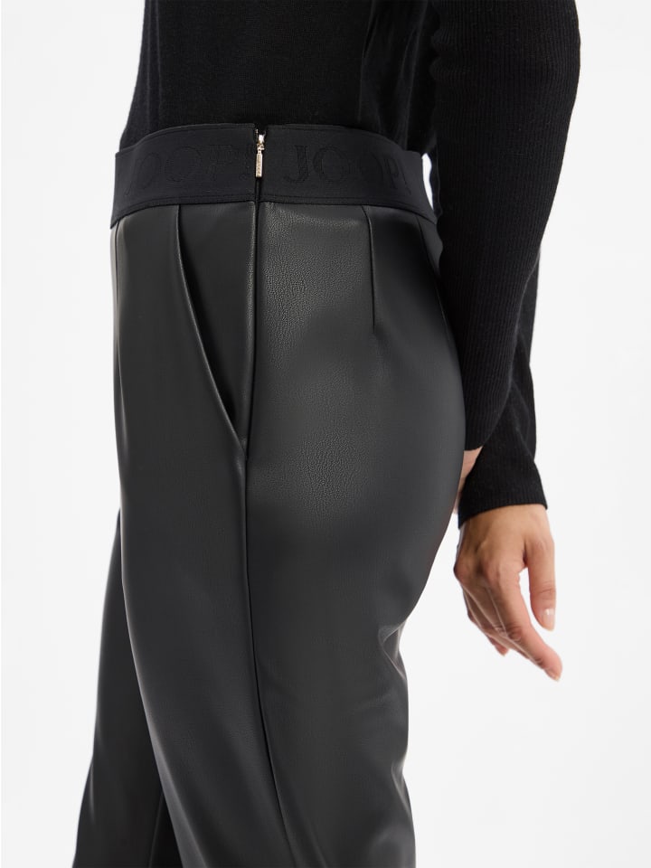 Эти брюки из искусственной кожи от JOOP! станут ярким акцентом женственного образа благодаря удобному поясу с жаккардовым принтом логотипа и боковой молнии.