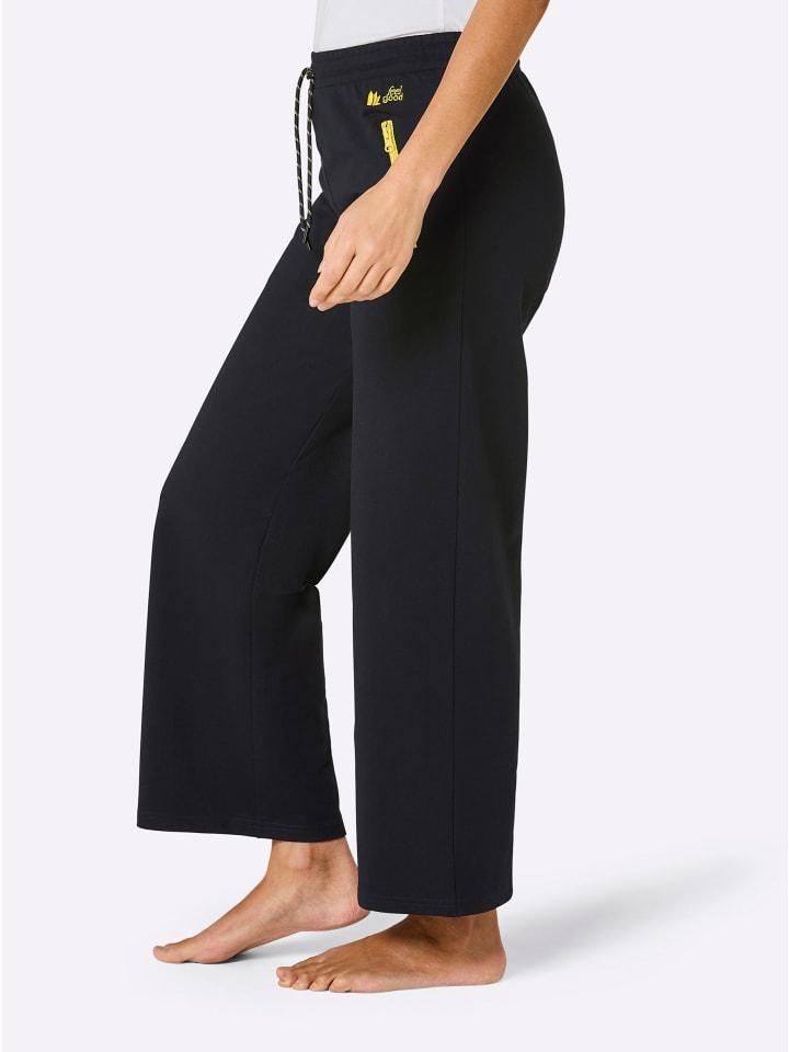 Брюки из приятного на ощупь материала, выполненного из комфортной толстовки. Гладкий пояс со шнурком, завязывающимся поясом и контрастной вышивкой. Два косых кармана на молнии контрастного цвета. Свободный, широкий крой. Соответствует инициативе «Сделано в Африке» (Cat Made in Africa).