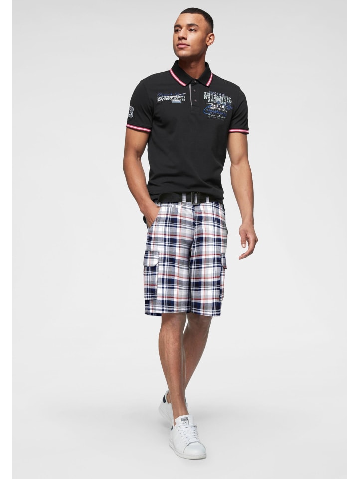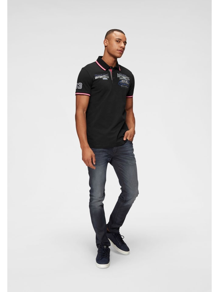 Универсальная мужская рубашка-поло от Bruno Banani. Она выгодно подчеркивает фигуру и застегивается на пуговицы. Рубашка украшена повседневными принтами. Благодаря пике верх дышащий и прочный.