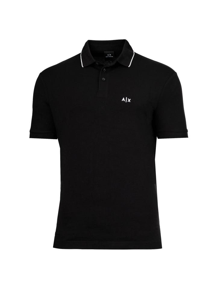 Мужская рубашка-поло A|X ARMANI EXCHANGE элегантного дизайна с контрастными полосками на воротнике и небольшим логотипом на груди. Мягкий хлопок с эластаном обеспечивает высокий комфорт при ношении.