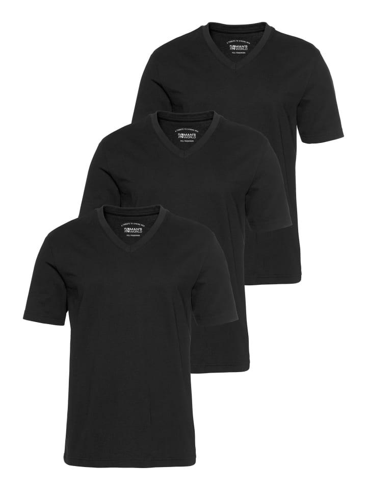 Универсальная мужская футболка с V-образным вырезом от Man's World. Классический крой и короткие рукава. Эластичный и мягкий трикотаж обеспечивает отличную свободу движений. В упаковке 3 футболки.