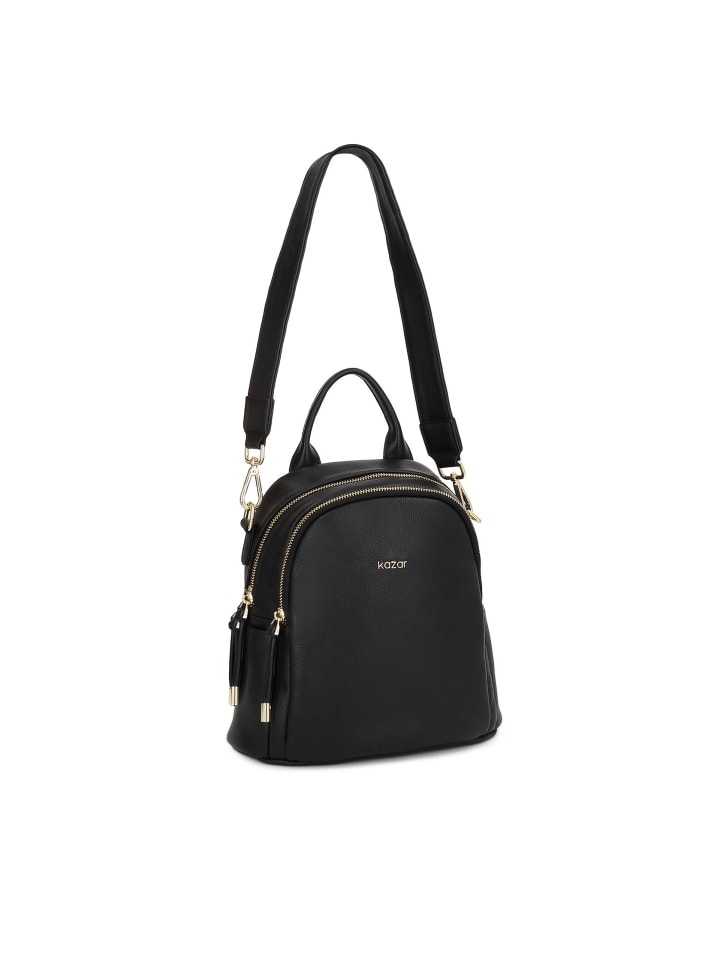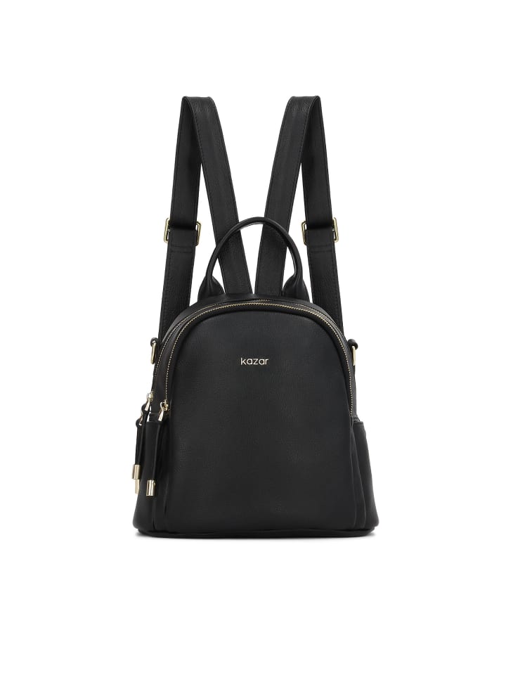 Этот черный рюкзак из высококачественной натуральной кожи сочетает в себе классическую элегантность с практичной функциональностью. Дизайн с золотистой металлической фурнитурой добавляет нотку изысканности. Два отдельных отделения на молнии гарантируют безопасность ваших вещей. Его компактная форма делает его идеальным для повседневного использования, а также стильным дополнением к любому городскому образу. Рюкзак имеет классические регулируемые плечевые ремни для ношения на спине и удобную верхнюю ручку. Дополнительным преимуществом является съемный плечевой ремень, позволяющий носить рюкзак как сумку - на одном плече. Эта универсальность позволяет адаптировать рюкзак к индивидуальным предпочтениям пользователя. Идеальный выбор для женщин, которые ценят качество, функциональность и вневременной стиль. Информация о продукте: Рюкзак имеет два отделения на молнии. Заднее отделение содержит три открытых кармана и один карман на молнии. Сзади рюкзака есть карман на молнии, а по бокам - открытые карманы. Рюкзак оснащен съемным плечевым ремнем.