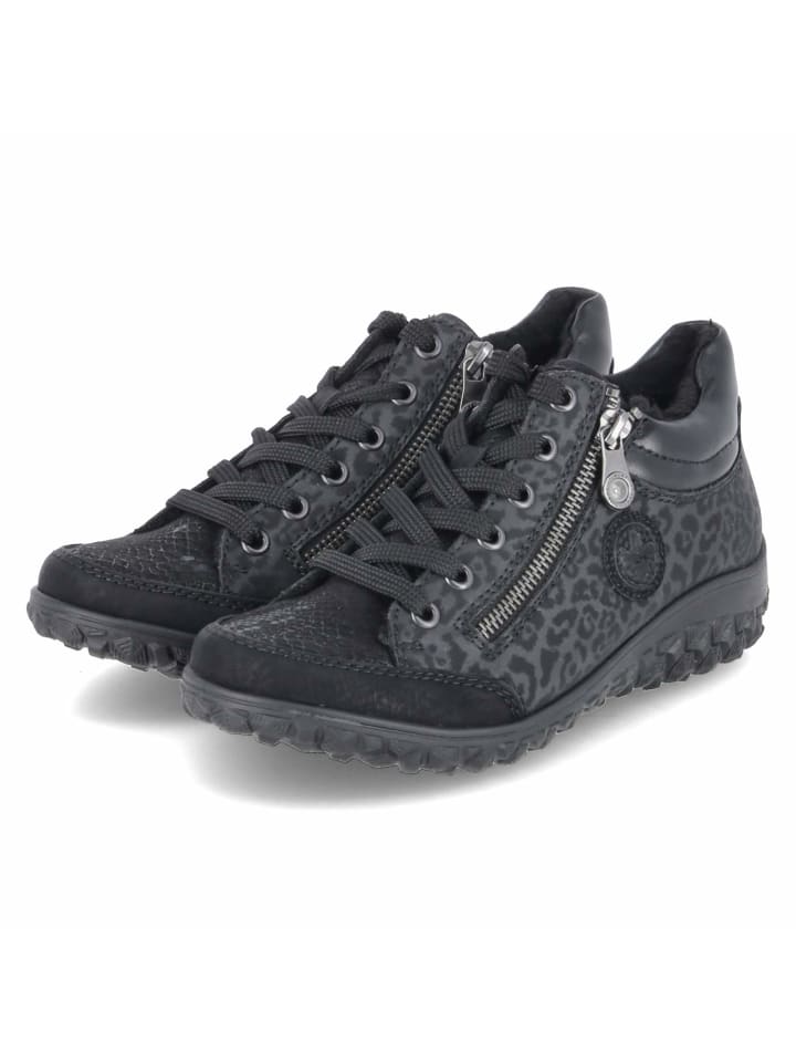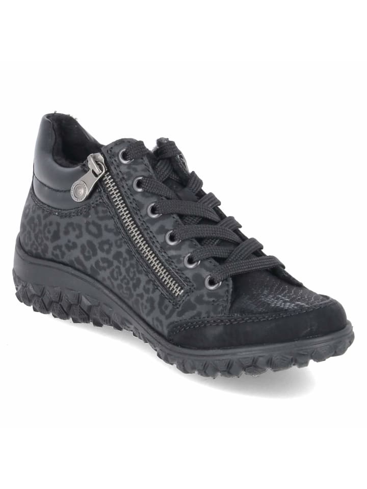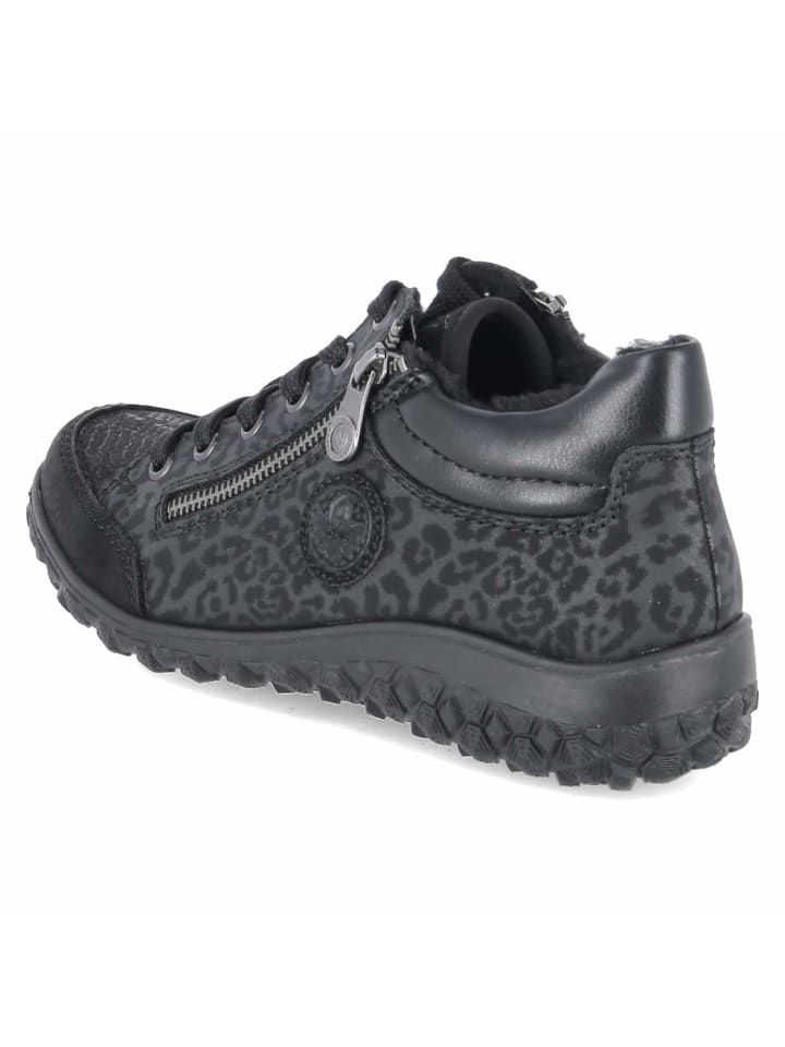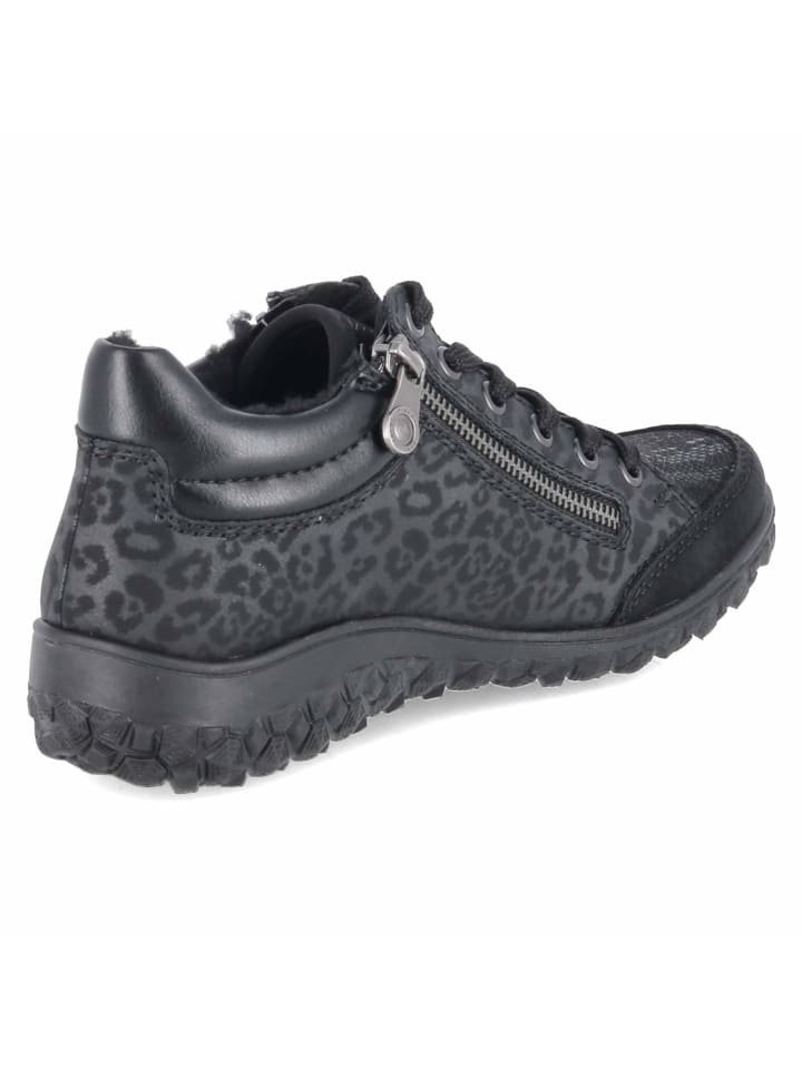 Городской спортивный стиль сочетается с изящным анималистичным принтом: эти женские низкие кроссовки Rieker черного цвета сочетают в себе простой в уходе синтетический верх с изящной леопардовой отделкой, что делает их ненавязчивыми. Закругленный носок с усиленной областью обеспечивает комфортную устойчивость, а мягкий бортик удобно обхватывает стопу. Гибкая нескользящая подошва обеспечивает надежную поддержку для повседневных занятий, а шнурки и практичные молнии позволяют быстро отрегулировать посадку и добиться точной посадки. Текстильная стелька обеспечивает воздухопроницаемость, а удобная съемная стелька повышает комфорт и легко заменяется при необходимости. Узкий крой подчеркивает элегантный силуэт. Универсальная обувь как для отдыха, так и для офиса. Модный совет: юбка миди из атласа и свитер тонкой вязки создают захватывающее сочетание материалов со спортивным оттенком.