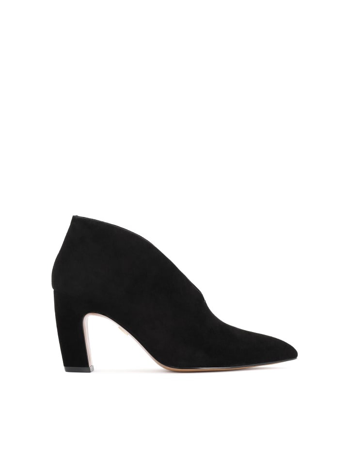 Черные сапоги на шпильке - элегантная и стильная модель, сочетающая классический дизайн с тонкими современными деталями. Верх из высококачественной замши отличается мягкой текстурой и матовой отделкой, что придает обуви изысканный характер. Декоративные скошенные края подчеркивают тонкую щиколотку и придают сапогам легкость и воздушность. Острый носок визуально удлиняет стопу, добавляя силуэту элегантности и женственности. Прочный каблук-шпилька обеспечивает комфортную и уверенную походку, делая сапоги подходящими как для повседневной носки, так и для более торжественных случаев. Эта модель - идеальное сочетание комфорта и изысканного дизайна, она дополняет как классический, так и современный стиль, добавляя элегантности и шика.