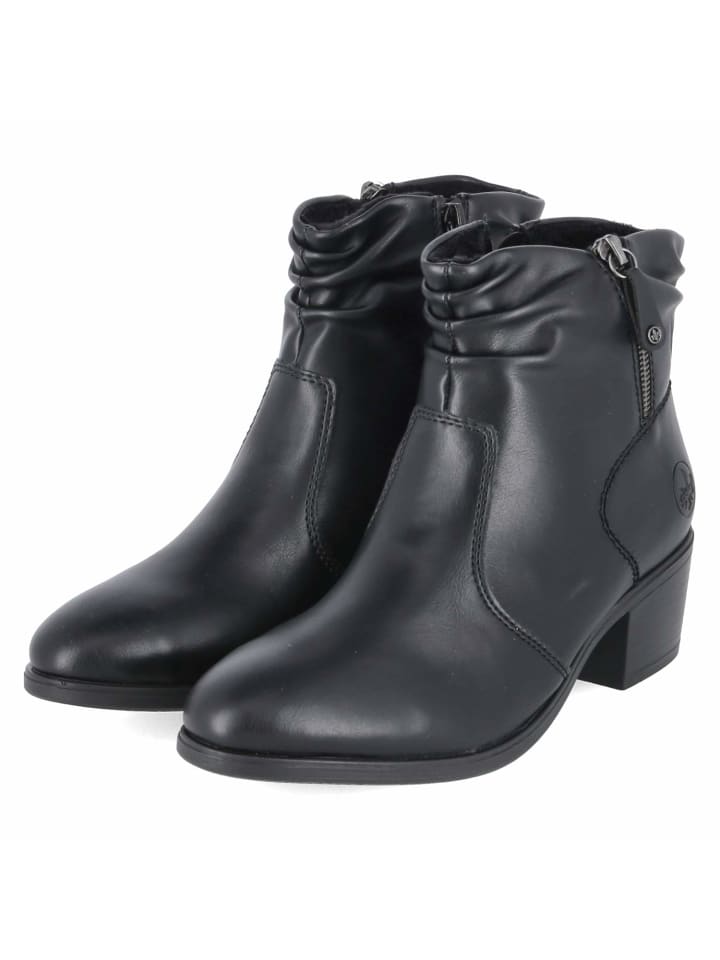 Стильная вещь для межсезонья: эти черные женские ботильоны от Rieker с блочным каблуком высотой 5,5 см обеспечивают надежную и комфортную посадку. Закругленный носок обеспечивает свободную посадку, а мягкая текстильная стелька и легкая подкладка обеспечивают комфорт и тепло в прохладные дни. Практичная молния позволяет легко надевать их, а дополнительная декоративная молния добавляет нотку непринужденности. Синтетический верх, не требующий особого ухода, идеально подходит для повседневной носки, а укрепленная пятка обеспечивает поддержку и устойчивость. Изящно присборенное голенище создает женственный силуэт, подходящий к различным нарядам. Эти ботинки соответствуют размеру и отлично подойдут как к деловому образу, так и к непринужденному образу для отдыха. Модный совет: Особенно хорошо смотрится с атласной юбкой-комбинацией и трикотажем грубого покроя или с джинсами прямого кроя и классическим тренчем.