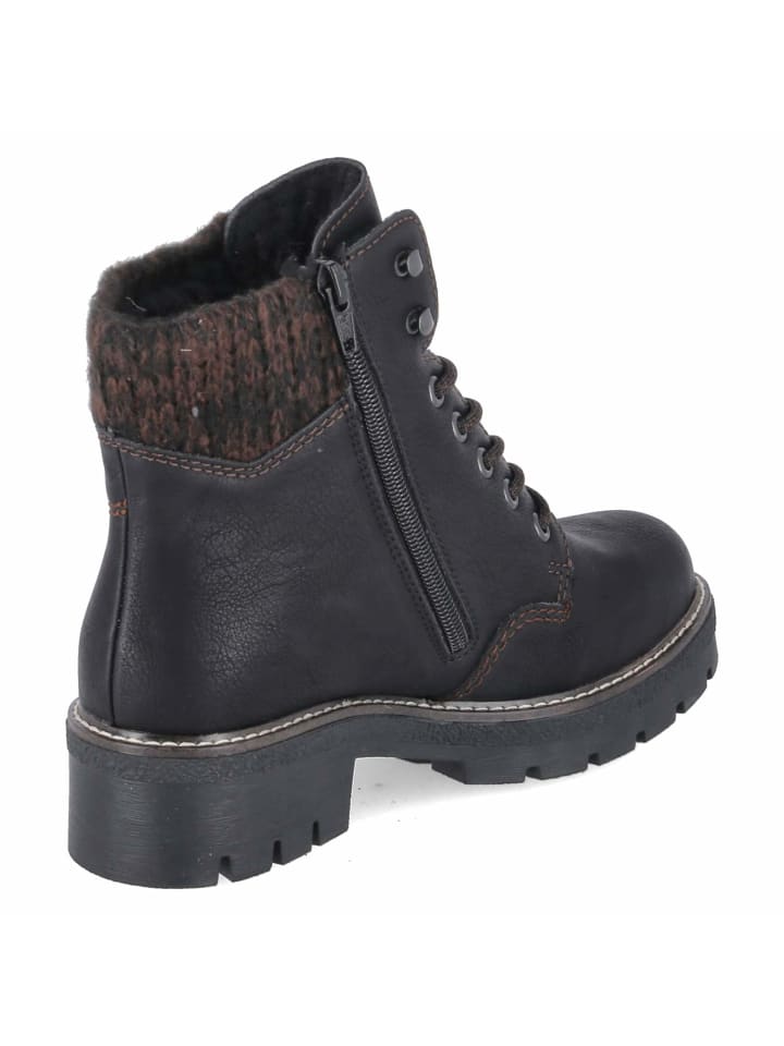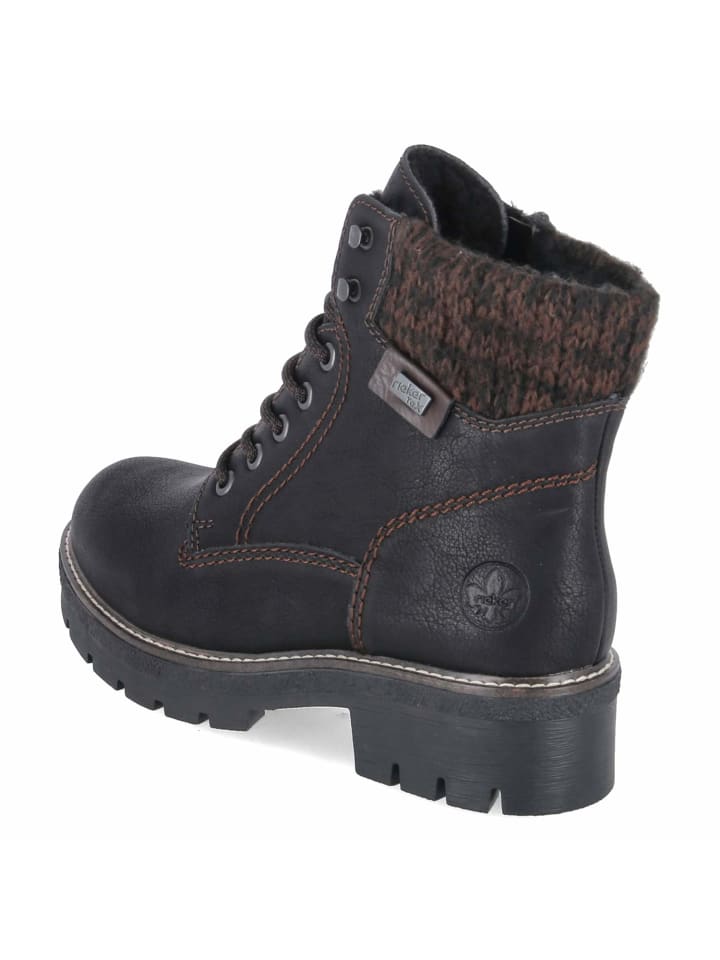 Комфорт и защита: эти женские зимние ботинки Rieker созданы для холодных дней благодаря теплой подкладке, мягкой съемной стельке и цепкой профилированной подошве. Черная синтетическая кожа с изящной декоративной строчкой имеет классический вид, а трикотажный манжет создает мягкий контраст. Благодаря водоотталкивающему верху ноги остаются сухими даже в слякоть. Шнурки и дополнительная молния позволяют быстро надевать ботинки и надежно регулировать их размер. Закругленный носок обеспечивает достаточно места, блочный каблук высотой 4 см обеспечивает устойчивость, а размерная сетка идеально подходит для повседневной носки. Ботинки, которые легко сочетают в себе функциональность и эстетику, украсив любой зимний образ. Модный совет: Особенно хорошо смотрятся с джинсами прямого кроя, меланжевыми шерстяными носками и приталенной кремовой стеганой курткой.