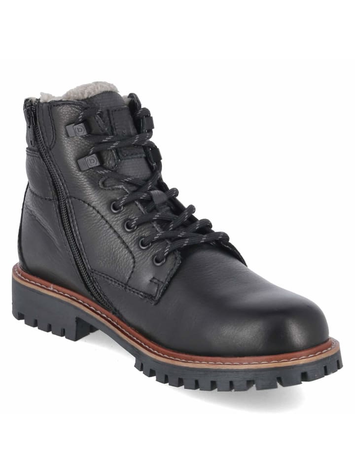 Классические, функциональные и зимние: эти мужские зимние ботинки Bugatti черного цвета с прочным верхом из кожи и текстиля и теплой подкладкой для низких температур. Молния и шнуровка обеспечивают легкое надевание и точную регулировку посадки. Закругленный носок, прочный каблук высотой 4 см и профилированная нескользящая подошва обеспечивают надежную устойчивость на скользких поверхностях. Мягкий бортик и укрепленная пятка заметно повышают комфорт. Ботинки имеют стандартную посадку и прекрасно сочетаются как с элегантными, так и с повседневными зимними нарядами. Модный совет: Серые шерстяные брюки, мериносовый трикотаж и чистое черное пальто создают изысканный городской образ, который будет впечатлять весь день.